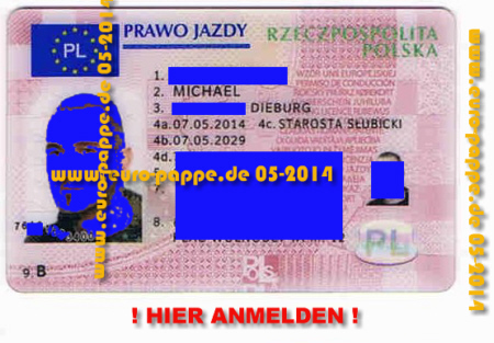 | Suchergebnisse: im EU Ausland legal den EU Führerschein erwerben, ohne MPU Führerschein, Europa weit gültig - polnische Fahrerlaubnis - gültig in Deutschland - ohne MPU Fahrerlaubnis - Slubice - inklusive offizieller Wohnsitz für 185 Tage - schnell zur Pappe Deckel Lappen - Tschechien nur 10 Jahre gültig - Führerschein Polen ist 15 Jahre gültig |
